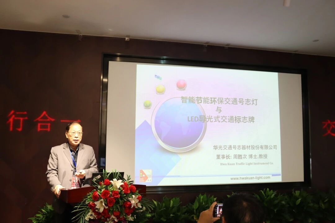 随后,同济大学王文斌副教授、朱炜副教授分别介绍了学院及交通运输系的办学理念、专业布局与科研成果;台湾逢甲大学郭仲伟副教授、台北市交通安全促进会许超泽教授、台湾华光交通号志器材股份有限公司董事长周胜次等两岸专家,也围绕交通技术应用展开分享——其中周胜次董事长详解的 “智能节能环保交通号志灯与LED导光式交通标志牌”,为学术研究与产业实践的融合提供了鲜活案例。